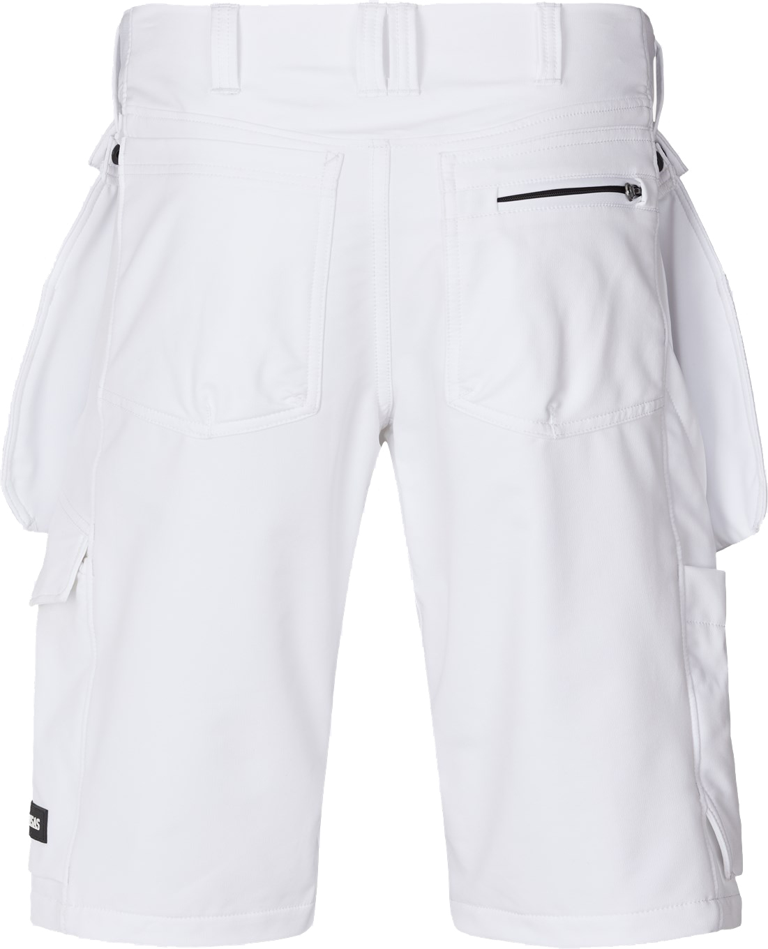 Flexible and comfortable work shorts in full stretch for 100% freedom of movement. Made from breathable, sweat-wicking and quick-drying material. Designed with removable hanging pockets for screws, nails or tools.