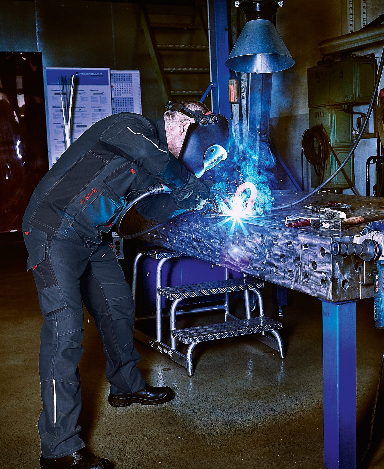 Made for you: welding protection class 2 for medium to heavy welding work, extra comfortable and soft fabric, knee pockets for knee pads & 1 folding rule pocket, modern fit