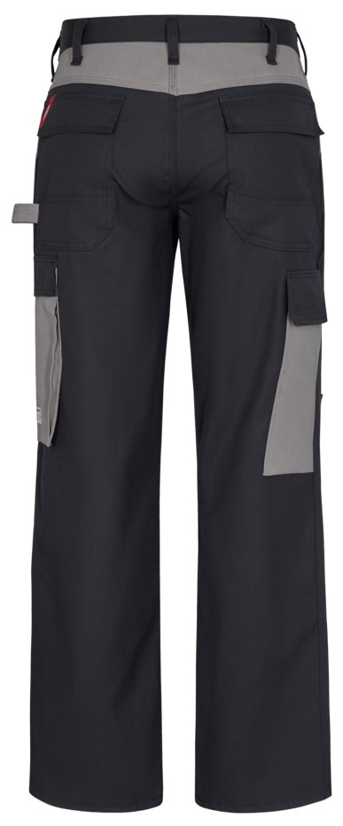 Waistband trousers with two concealed slit pockets. Reinforced back pockets with flap, hammer loop, folding rule pocket, knee reinforcement/knee pockets with Velcro fastener at the bottom. Functional details on pockets and waistband prevent sparks from catching. Antistatic, flame-retardant and protective against aerosols, spray and light splashes of chemicals.