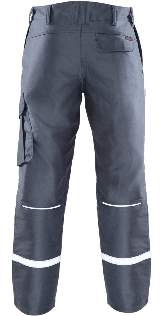rofaALU-SPLASH waistband trousers made of an inherently flame retardant doubleface fabric offers maximum protection against molten aluminium and that at low weight. The innovative fabric is hard-wearing and also protects against heavy welding work, liquid iron, electric arcs as well as heat and flames. An additional plus is the electrostatic dissipation capability. The intelligently positioned reflective piping and stripes ensure good visibility and a dynamic appearance. The ergonomic fit due to the raised waistband and trouser legs with darts provides sufficient freedom of movement. Sophisticated pocket solutions are practical and can be used individually.Design: waistband with belt loops and button, slit with zip, 2 side pockets, left cargo pocket with flap and press studs, right hip pocket with flap and press studs, reflective piping on rear trouser legs, 25mm reflective stripes around trouser legsMaterial/quality: fabric 417, double fabric, 54% viscose FR, 20% wool, 20% polyamide,