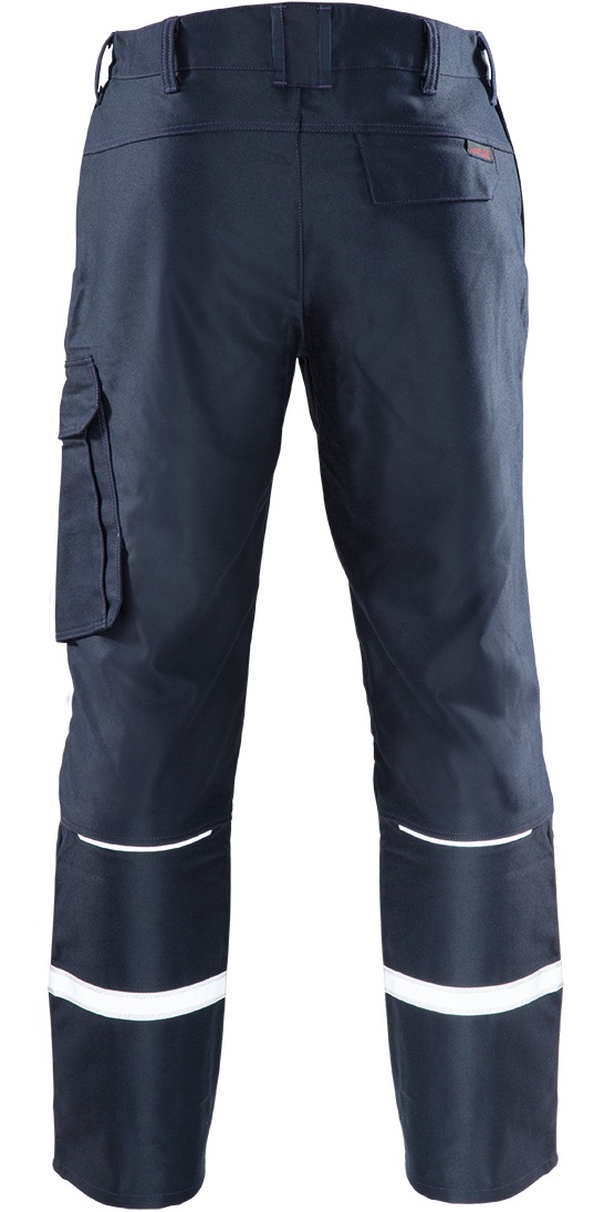 rofaALU-SPLASH waistband trousers made of an inherently flame retardant doubleface fabric offers maximum protection against molten aluminium and that at low weight. The innovative fabric is hard-wearing and also protects against heavy welding work, liquid iron, electric arcs as well as heat and flames. An additional plus is the electrostatic dissipation capability. The intelligently positioned reflective piping and stripes ensure good visibility and a dynamic appearance. The ergonomic fit due to the raised waistband and trouser legs with darts provides sufficient freedom of movement. Sophisticated pocket solutions are practical and can be used individually.Design: waistband with belt loops and button, slit with zip, 2 side pockets, left cargo pocket with flap and press studs, right hip pocket with flap and press studs, reflective piping on rear trouser legs, 25mm reflective stripes around trouser legsMaterial/quality: fabric 417, double fabric, 54% viscose FR, 20% wool, 20% polyamide,