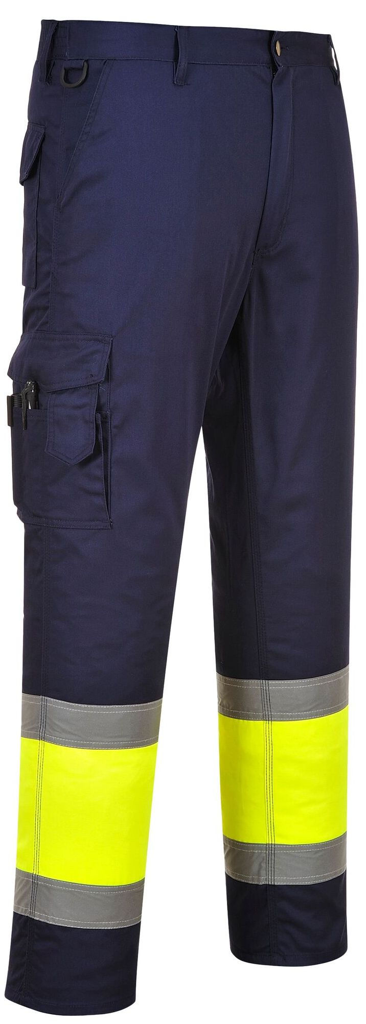 This certified, two-coloured warnschutz-Cargohose has a functional equipment. The high proportion of navy blue makes the trousers look longer clean.Warning protection WorkwearIn combination with safety and design, our fabrics are made from a durable premium polyester/cotton blend. These fabrics offer variability in weight and blend. The strong luminous Portwestfabrics combined with the retroreflective stripes on the garments provide the highest possible visibility in poor light or adverse weather conditions.Warning Protection Our extensive warning protection collection, meets the highest requirements in design and workmanship to ensure that the items comply with the latest standards EN ISO 20471 & ANSI. Innovative and technical, our warning collection is ideal for those who don't compromise on style, comfort, protection and performance.Product features: Standards EN ISO 20471 Class 1 CE certified Durable polyester/cotton fabric with Texpel finish Reflective stripes for good visibili