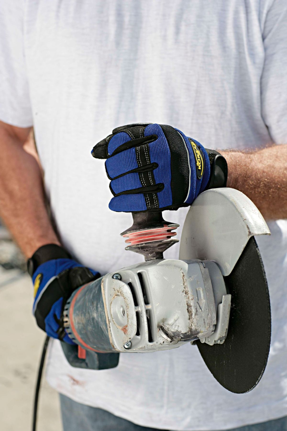 - Reinforcements on index finger, thumb and fingertips protect against abrasion