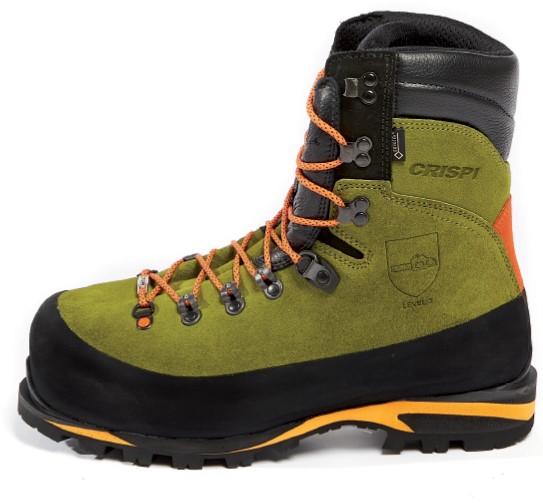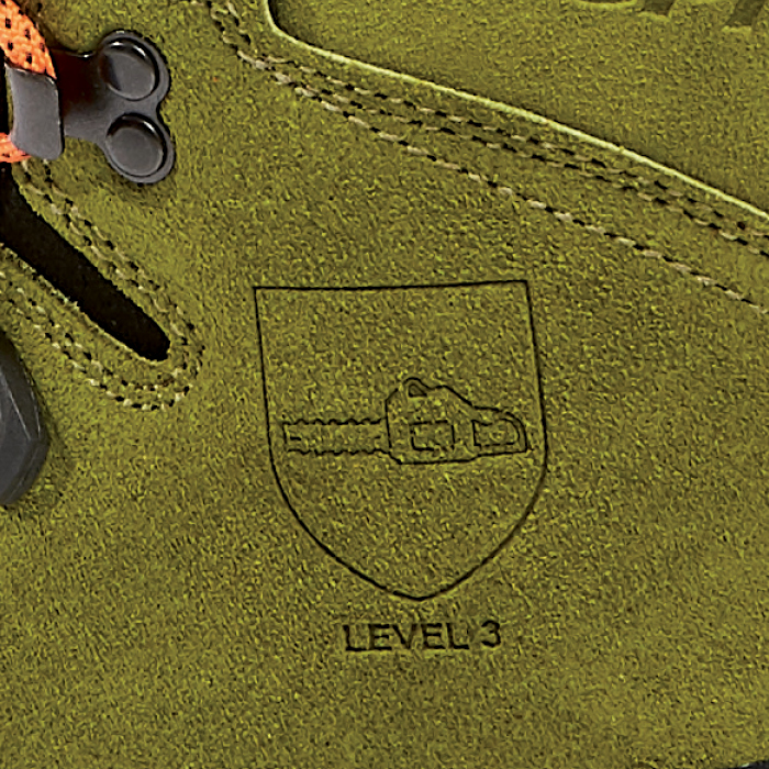 The technically, high-quality processed cut protection shoe is especially suitable for alpine terrain thanks to the stable sole structure and its high upper.