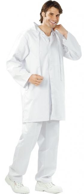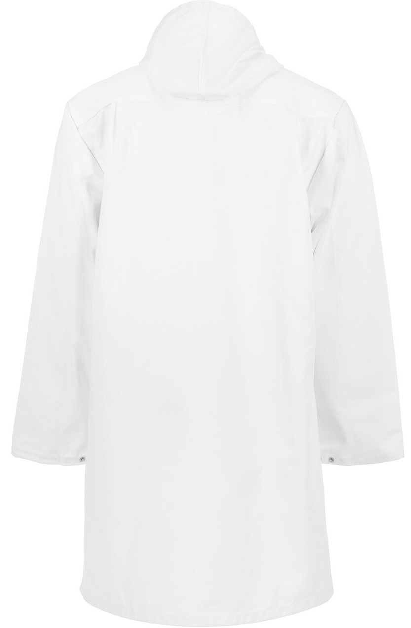 Hood, concealed press stud placket, 2 side pockets, can be closed with flaps and press studs, 1 inside pocket right, 1 inside pocket and mobile phone pocket left, adjustable cuffs with press studs, fabric in the shoulder area and on top of the sleeves double layered.