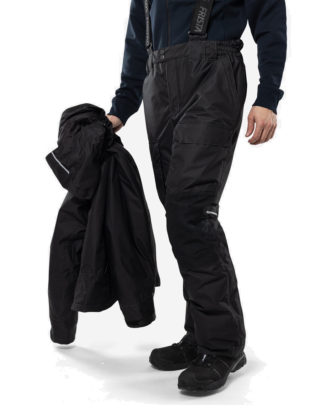 Waterproof winter trousers made of windproof and breathable Airtech® material with soft quilted padding. Functional, lined trousers with zippers at the leg ends, making it easier to work in cold temperatures. The detachable suspenders have a fleece panel on the back for extra warmth and comfort. Concept: Alnaryd