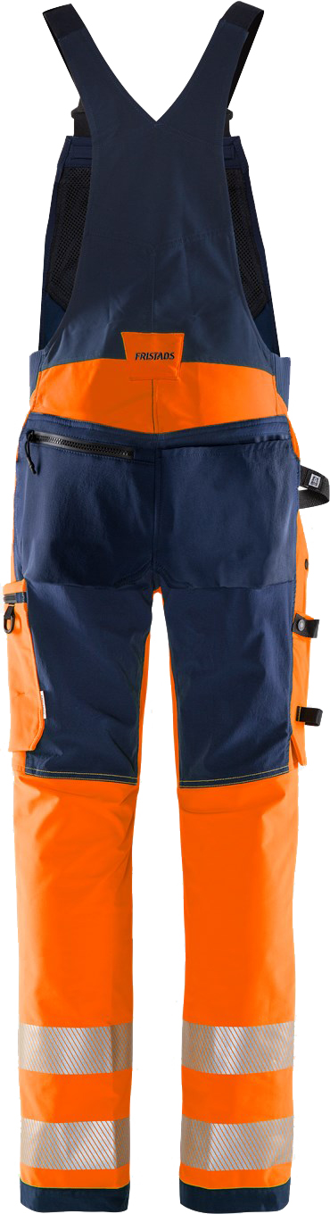 Sustainable, high-visibility stretch dungarees made from 4-way stretch material with stretch inserts at the waistband. Made from bio-based and recycled materials and reinforced in exposed areas. With EPD (Environmental Product Declaration). Concept: Stiby