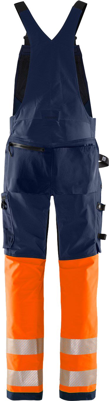 Sustainable, high-visibility stretch dungarees made from 4-way stretch material with stretch inserts at the waistband. Made from bio-based and recycled materials and reinforced in exposed areas. With EPD (Environmental Product Declaration). Concept: Stiby