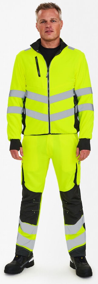 Functional, fluorescent fleece jacket in a modern, attractive design with stretch lining. The jacket is lined with fleece at the collar, making it soft and comfortable against the skin. Reflective zipper at the front. The jacket can be combined with the 1146-930 models, which have a zipper for zipping in. Two spacious side pockets and a chest pocket, each with a zipper. Two large inside pockets with Velcro fasteners. The jacket has an elastic waistband at the bottom. Sleeves with elasticated wind cuffs with thumb opening. Sleeves with elasticated wind cuffs with thumb opening. Additional storm flap made of elastic material in the sleeves. The storm flap with thumb opening can be pulled over the hand to protect against the cold. Reflective stripes across the shoulders and around the sleeves and waist. Clothing class 2, tested after 25 washes.