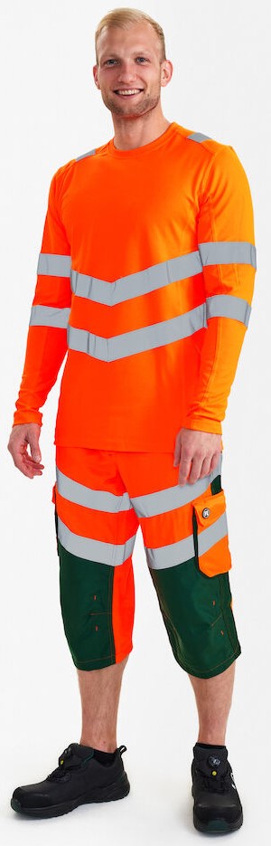 Comfortable and stylish long-sleeved T-shirt with high-visibility function in a modern design. The T-shirt is made from comfortable piqué fabric with cotton on the inside for added comfort. Ribbed neckline. Reflective stripes on the shoulders and around the sleeves and waist. Clothing class 2, tested after 25 washes.
