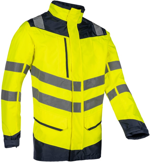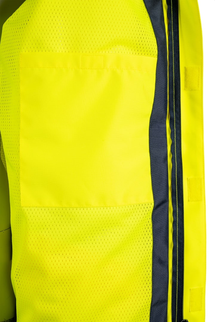 The Birkum jacket proves that sustainability goes hand in hand with visibility and protection. This high visibility rain jacket has been developed with the efficient use of raw materials and recyclability in mind. Not only are recycled raw materials used, but this jacket is also designed for easy disassembly. In addition, this sustainable jacket also protects the wearer from the effects of precipitation, as it meets the highest class of the latest EN 343 standard.