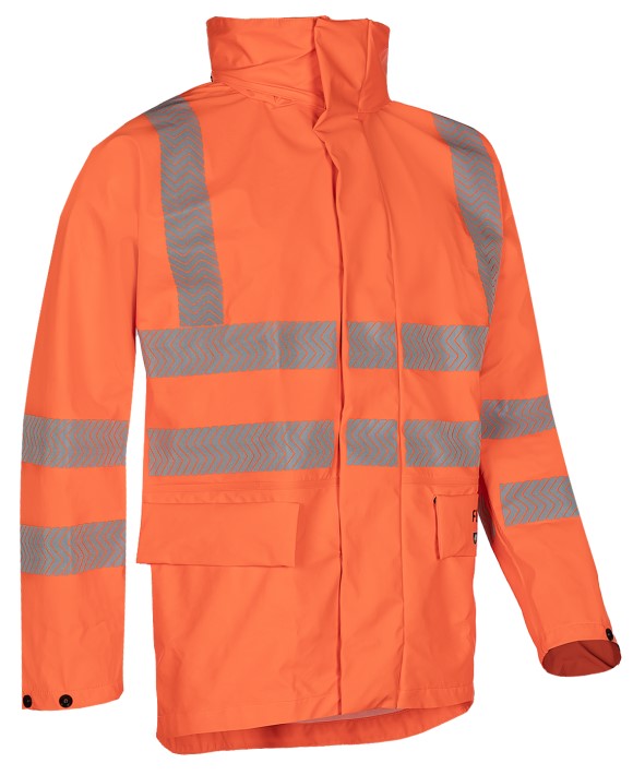 Wilkie is a very lightweight and durable waterproof high visibility rain jacket. This new version of our Andilly jacket features segmented flame retardant reflective stripes on the arms, stomach, chest and back and has a modernized look and fit. The conductive yarn, which prevents the build-up of static electricity, has been integrated into the Flexothane® anti-static fabric and gives the jacket durable anti-static properties. Thanks to the stowable hood, this jacket is multifunctional.