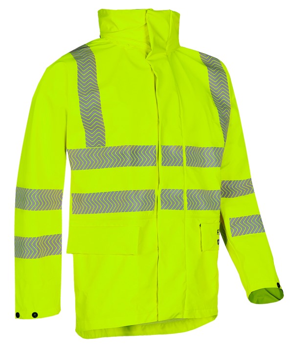 Wilkie is a very lightweight and durable waterproof high visibility rain jacket. This new version of our Andilly jacket features segmented flame retardant reflective stripes on the arms, stomach, chest and back and has a modernized look and fit. The conductive yarn, which prevents the build-up of static electricity, has been integrated into the Flexothane® anti-static fabric and gives the jacket durable anti-static properties. Thanks to the stowable hood, this jacket is multifunctional.