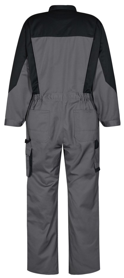 Work overall with concealed two-way plastic zipper in matching color design. Dark-colored press studs. Chest pocket with flap and Velcro fastener on the left. Open breast pocket with closable cell phone pocket on the right. Two slit pockets. Concealed access on the left and right. Triple topstitching. Reinforced upper arms. Adjustable cuffs. Elastic waistband. Two pleats in the back for greater freedom of movement. Two reinforced back pockets, the right one with Velcro fastening. Reinforced ruler pocket with expansion pleat on the right. Thigh pocket with stretch pleats and flap with Velcro fastening and additional pencil pockets on the left. Hammer loop on the left. Knee pockets/knee reinforcement with Velcro fastener and two adjustment options for inserted knee pads. Suitable for industrial laundering.