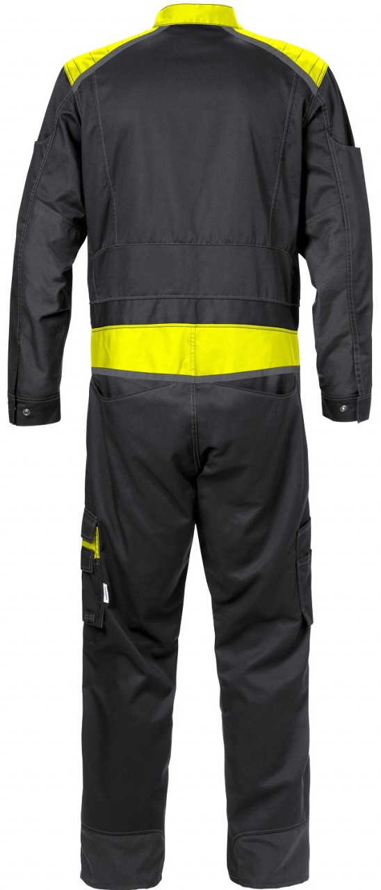 Modern coverall for workers in the industrial or service sector. Made of a lightweight and durable material with mechanical stretch for greater freedom of movement. Equipped with knee pockets and reflective details for greater visibility. Approved for industrial laundering. Not a stock item, but can be ordered. Concept: Skarup