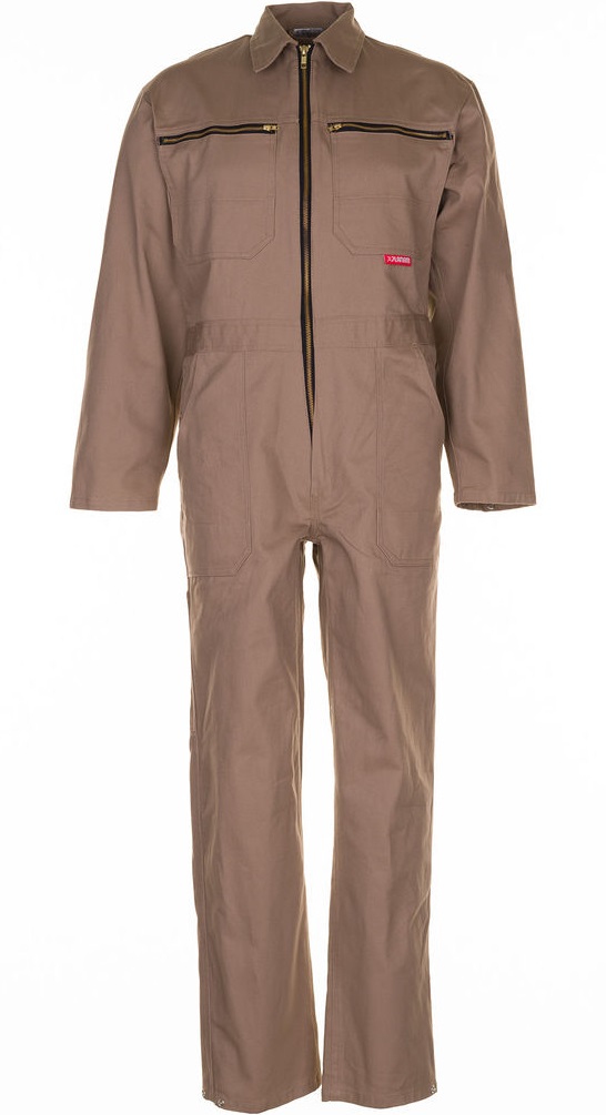 Turn down collar, 2-way zipper approx. 70 cm, 2 breast pockets, 2 patch side pockets, 1 ruler pocket, 2 back pockets, 2 side openings, adjustable elasticated back, adjustable foot width at the legs, adjustable sleeve cuffs.