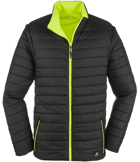 Extremely versatile. The RENO reversible jacket offers everything that characterizes a high-visibility jacket on the one hand, and a black version in an inconspicuous, modern design on the other. In addition, the sleeves can be zipped off and the jacket can also be worn as a vest. More flexibility is not possible! Segmented, laminated reflective strips run around the body and sleeves as well as over the shoulders (suspenders reflective strips). An innovative functional membrane guarantees that the fabric is highly waterproof and very breathable. The ripstop fabric is robust, hard-wearing and therefore particularly durable. RENO can also be combined with all 4PROTECT® high-visibility/weatherproof jackets. Whichever way you look at it: The jacket is and remains a highly functional all-rounder.