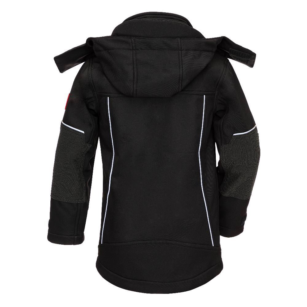 NITRAS MOTION TEX KIDS, softshell jacket for children, black (color code: 1000), 340 gsm, high wearing comfort thanks to soft softshell material with water- and wind-repellent properties and extended back, adjustable cuffs with Velcro for optimal fit and support, heat-insulating lining, reinforcements on elbow area for high resistance during adventurous activities, Reflective elements for better visibility and more safety, stand-up collar, full-length YKK zipper with chin guard and wind stopper inside, inside, chest and side pockets, pulse warmer for colder temperatures, detachable hood with velcro at neck for optimal fit and as additional protection against wind and weather, also available in adult sizes