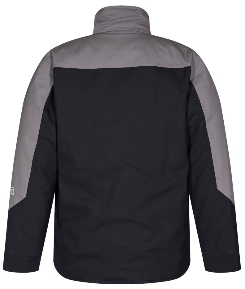 Winter jacket with double button placket, concealed press studs and metal zipper at the front. Chest pockets with flap and Velcro fastening, both with cell phone pocket. Two inside pockets with zipper. Two side pockets with flap and Velcro fastening. The jacket is equipped with a flame-retardant quilted lining and a membrane to prevent water penetration. Practical details on pockets and seams prevent sparks from getting caught. Antistatic, flame-retardant and protects against aerosols, spray and light splashes of chemicals. Standards: EN 1149-5 EN ISO 11611 A1 class 2 EN ISO 11612 A1, B2, C2, D3, E3, F1 EN 13034+A1 Type 6 IEC 61482-2 OEKO-TEX STANDARD 100 Other properties: Material: 75% cotton / 24% polyester / 1% antistatic fibers, 300 g/m² Lining: 68% cotton / 30% aramid (Kermel®) / 2% Functional details prevent sparks from getting caught metal zipper at the front double button placket with concealed press studs outside and inside pockets flame-retardant quilted lining Membrane