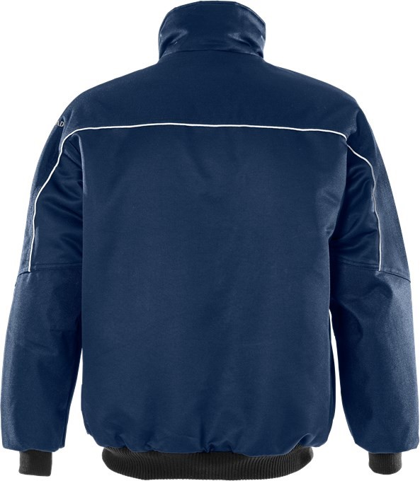Durable pilot jacket made of water-repellent material with quilted lining. Workwear jacket with reinforcements on shoulders and elbows and reflective piping for better visibility.