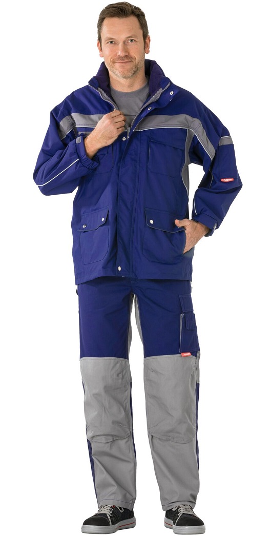 Breathable, waterprooferdi, glued seams, fleece collar, reflective piping as safety feature, hood in collar, 1 breast pocket on left with flap and Velcro fastener, double breast pocket on right, mobile phone pocket on right breast, 2 pen pockets, 2 side pockets, 2 patch side pockets, sleeve pocket on left, document pocket under front flap, mesh lining inside, concealed front zip, adjustable cuffs with Velcro fastener.