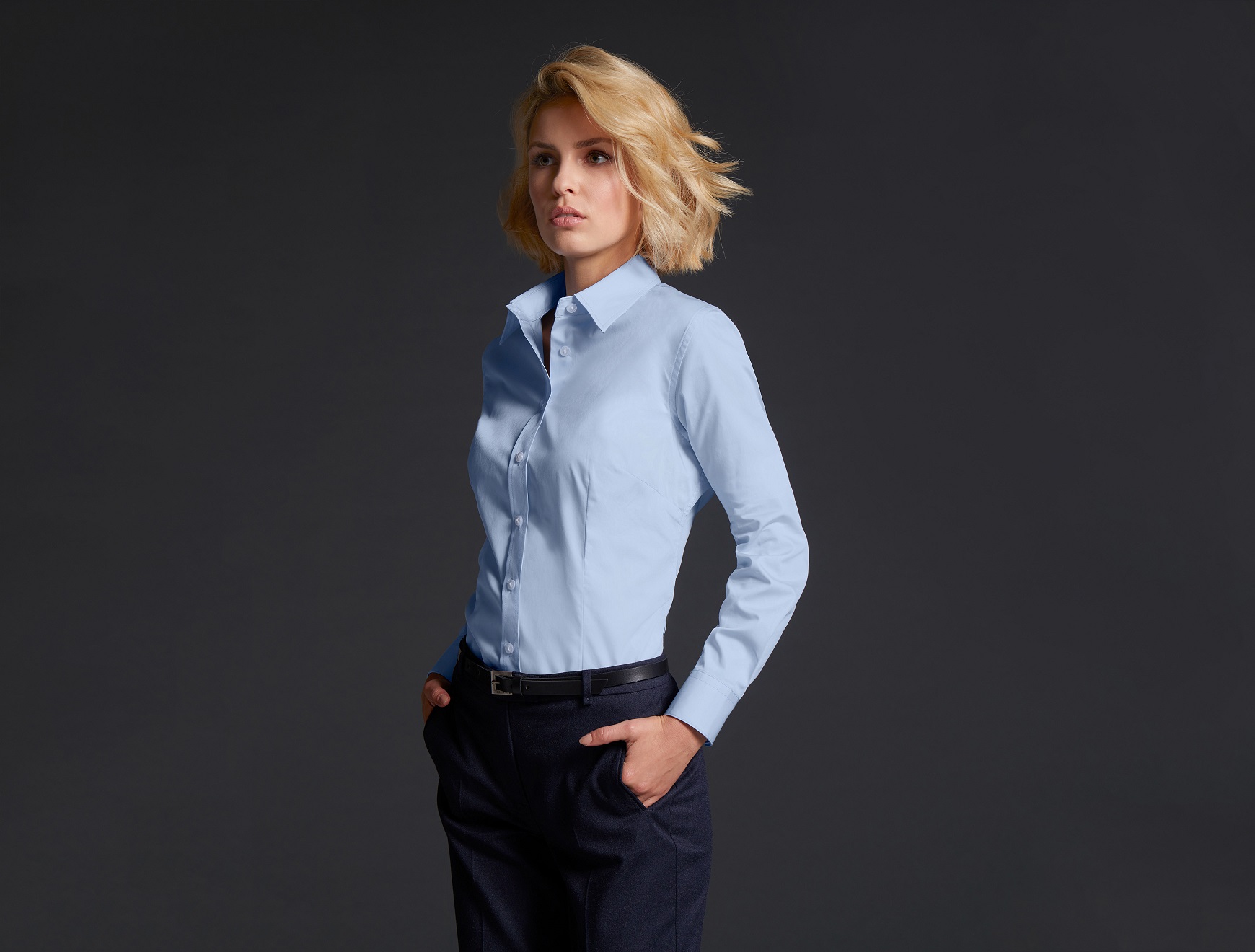 - Classic fit - feminine silhouette due to chest and back darts