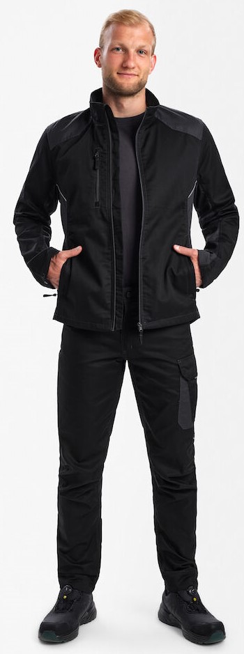 Functional two-tone jacket with a cut that focuses on a good fit. The work jacket is made from a fabric that is comfortable to wear in both warm and cold temperatures. The jacket has been developed with a focus on industry and has all the necessary functional details as well as additional details that make the work jacket suitable for other sectors. For example, it has two spacious side pockets with concealed zippers and a chest pocket with a zipper. Large inside pocket with Velcro fastening and zipper at the front. Adjustable cuffs with press stud fastening. Reflective details on the front and back provide better visibility. The work jacket is designed to offer plenty of space for the company logo.