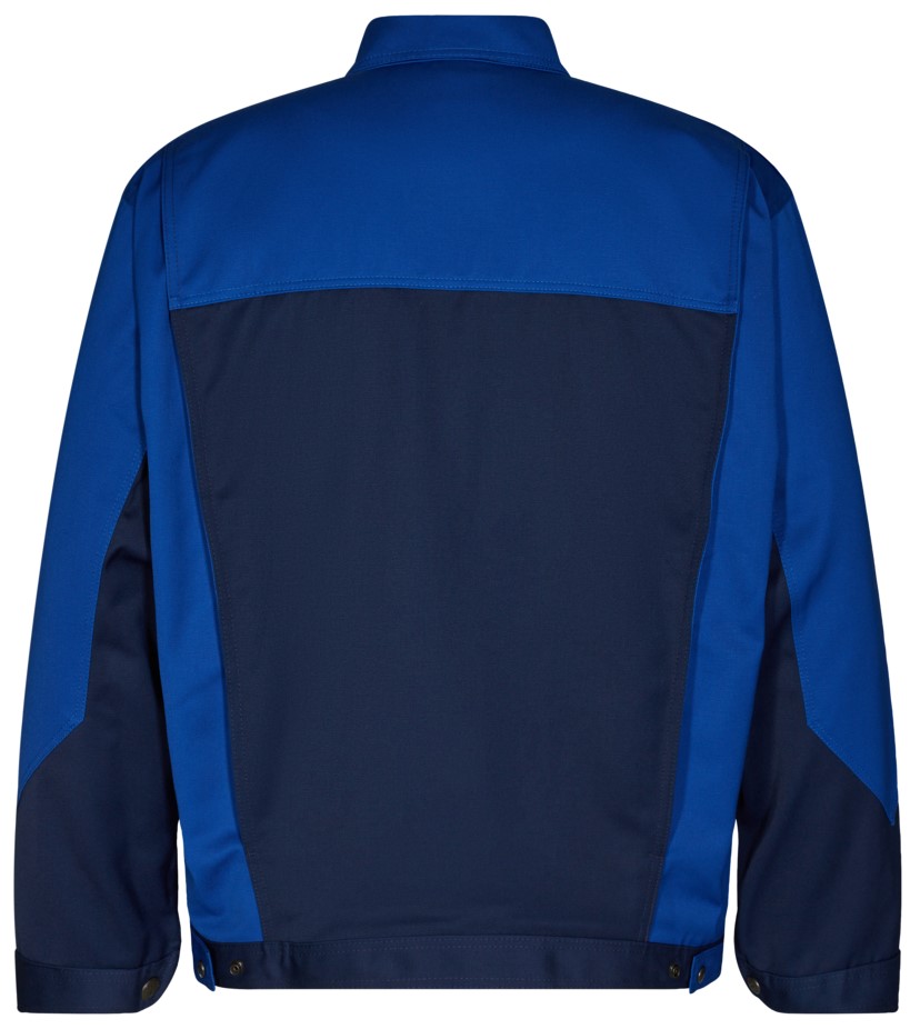 Work waistband jacket with concealed plastic zipper in matching color design. Dark-colored press studs. Chest pocket with flap and Velcro fastener on the left. Open breast pocket with closable cell phone pocket on the right. Two slit pockets. Triple topstitching. Inner pocket with flap. Reinforced upper arms. Adjustable waistband and cuffs. Two pleats in the back for greater freedom of movement. Suitable for industrial laundering.