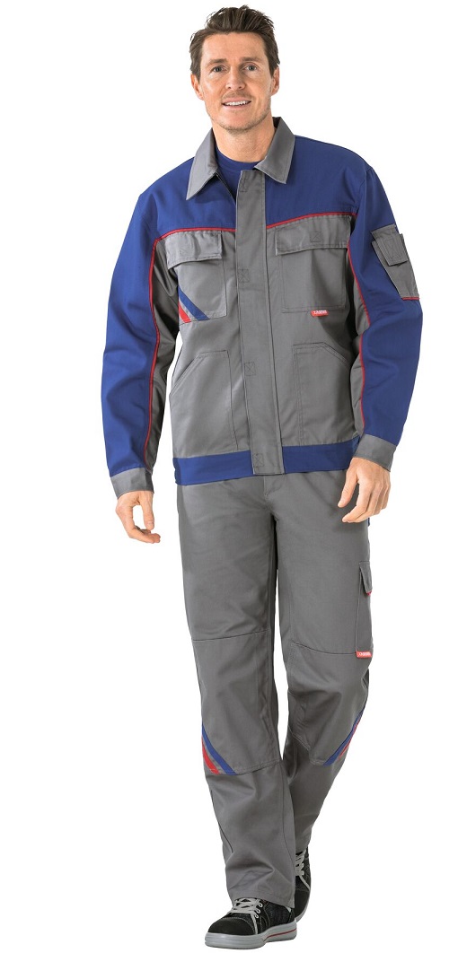 2 patch side pockets, 2 breast pockets with flap and Velcro closure, coloured applications on the right breast pocket, mobile phone pocket on the left sleeve, adjustable cuffs with Velcro closure, concealed front zip, elastic waistband, piping on saddle and sleeves, 2 golf pleats on the back.