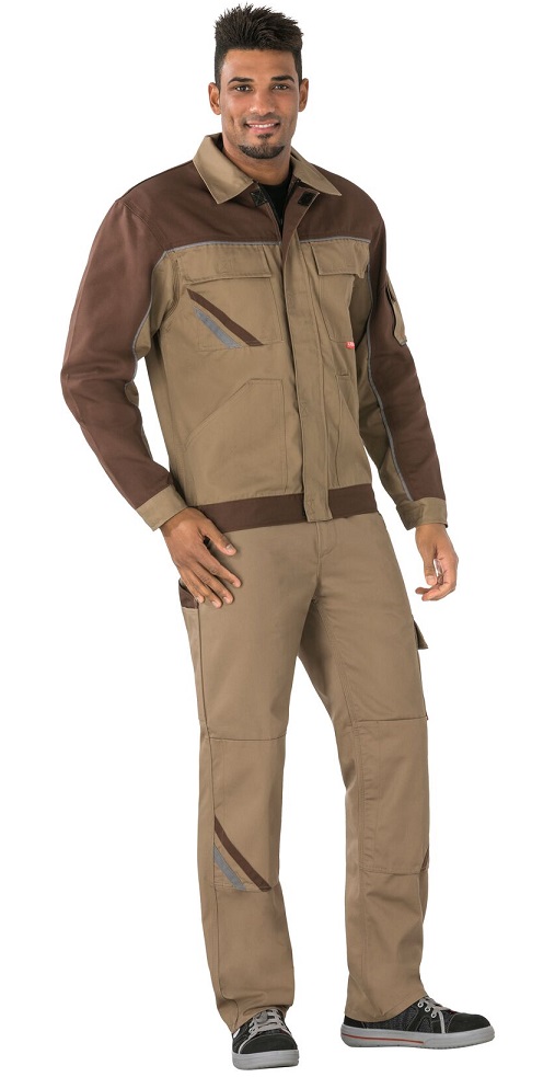 2 patch side pockets, 2 breast pockets with flap and Velcro closure, coloured applications on the right breast pocket, mobile phone pocket on the left sleeve, adjustable cuffs with Velcro closure, concealed front zip, elastic waistband, piping on saddle and sleeves, 2 golf pleats on the back.