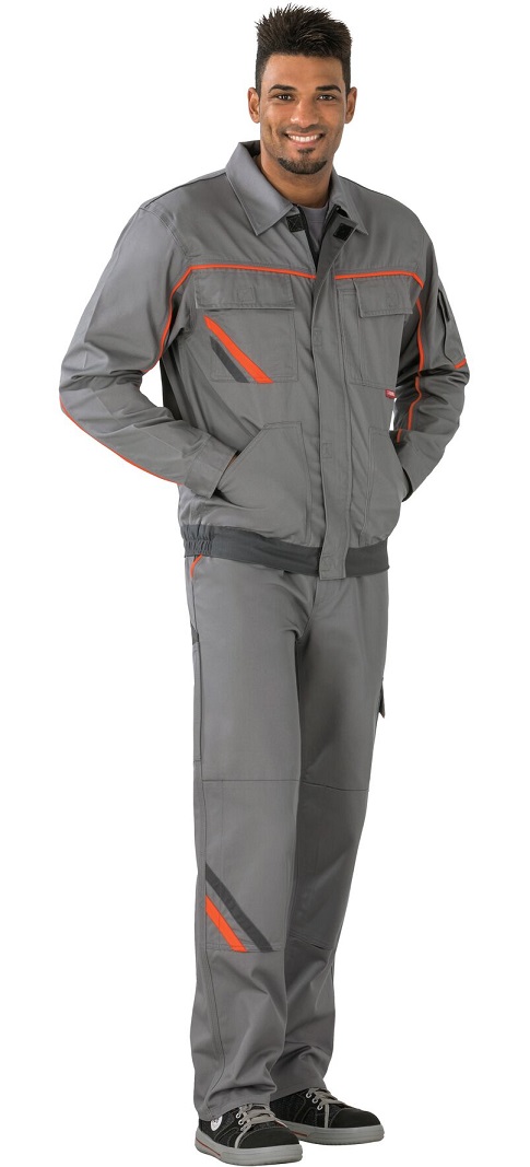 2 patch side pockets, 2 breast pockets with flap and Velcro, color applications on the right breast pocket, mobile phone pocket on the left sleeve, adjustable sleeve cuffs with Velcro, concealed front zip, elastic waistband, piping on saddle and sleeves, 2 golf pleats in the back.