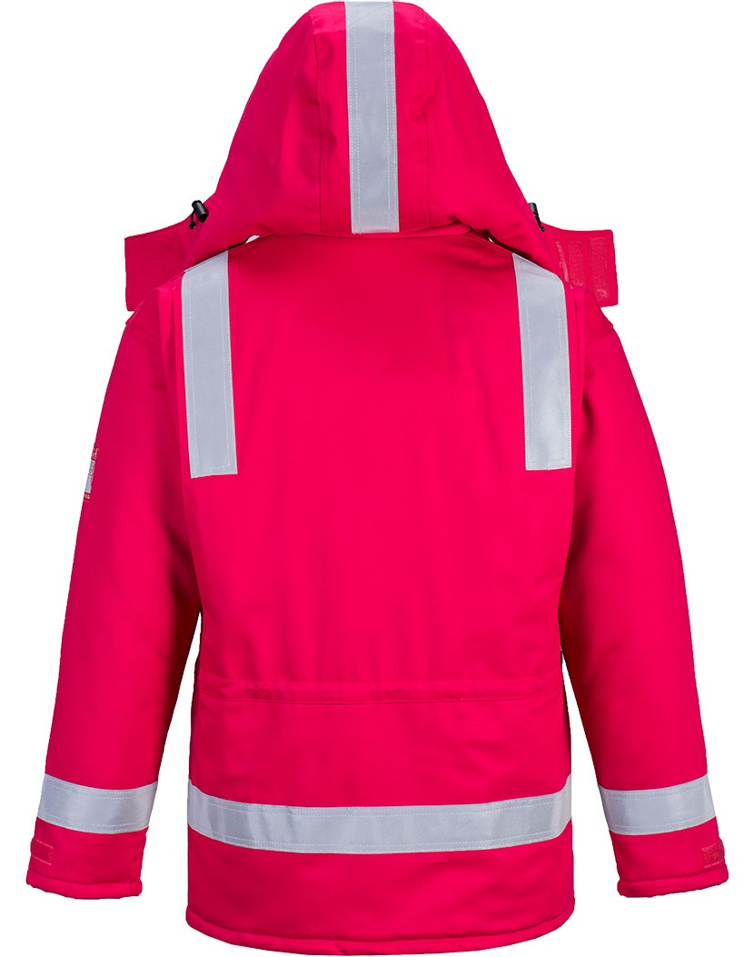 This flame retardant winter jacket is ideal for the offshore industry. Made from the same outer fabric as FR50, combined with thick insulation padding for extra heat. With double stitched reflective stripes on arms, body and shoulder. Conforms to all required EN standards, including the welding protection standard. With triple seams, concealed 2-way brass zipper and two diagonal breast pockets with flap. With drawcord for optimum fit and detachable hood.Flame retardant This industry-leading collection offers multi-standard protection for potentially explosive atmospheres. These state-of-the-art products are the result of many years of experience, state-of-the-art technology and market research. A commitment to the health, safety and comfort of the wearer can be seen in the wide range of products suitable for all weather conditions and applications.Product features: Standards EN ISO 11612 (A1+A2 B1, C1, E2, F1) EN 1149 -5 EN 342 (0.451m2.K/W(B) X,2,X) EN ISO 11611 Class 2 (A1+A2) CE c