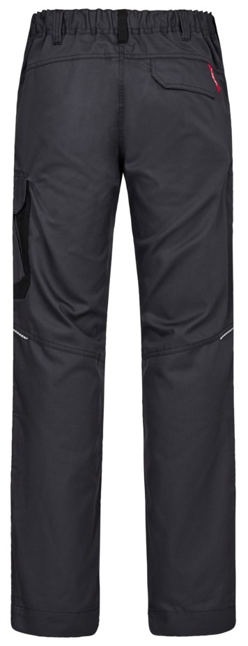 Two-tone service trousers with a modern cut, in which great importance was attached to a good fit. The service trousers are made from a fabric that is comfortable to wear in both warm and cold temperatures. The trousers have pre-shaped knees for maximum freedom of movement and a practical elasticated waistband at the back, which ensures a good fit and prevents the trousers from slipping during repeated movements. The service trousers were developed with the industry in mind. They have all the necessary functional details and are also suitable for drivers, warehouse staff or similar work functions. The service trousers have a particularly large number of functional pockets, such as two spacious slanted front pockets. Back pocket with Velcro fastener. A thigh pocket with flap and separate cell phone pocket on the left side. On the right side there is an inside pocket, for example for a folding rule pocket or a ruler. For better visibility and safety, the trousers have functional reflecti