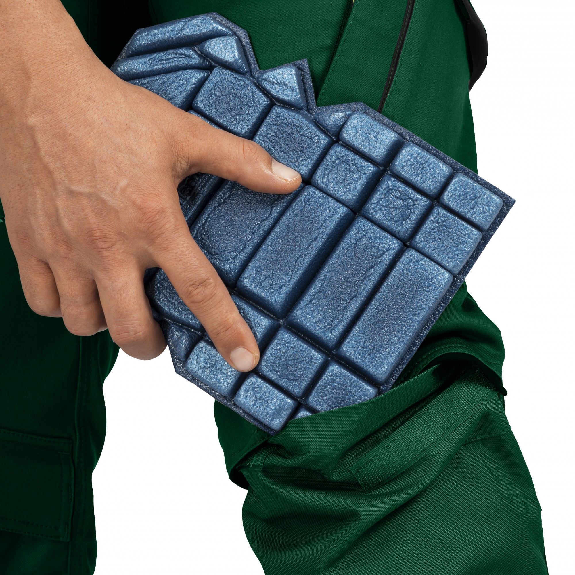 Longitudinal tabs prevent the knee pad from slipping out of place