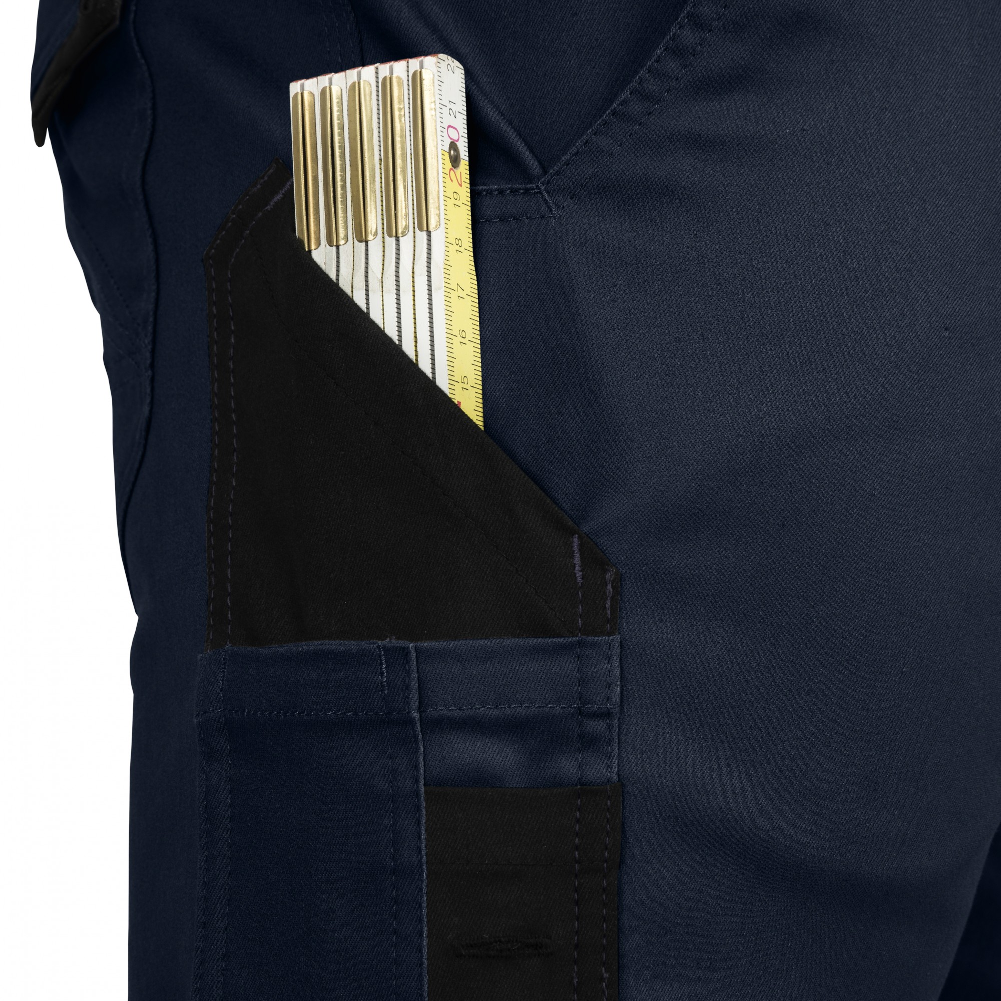 Cargo pocket with two compartments plus one zippered insert pocket and one pen pocket on the left leg