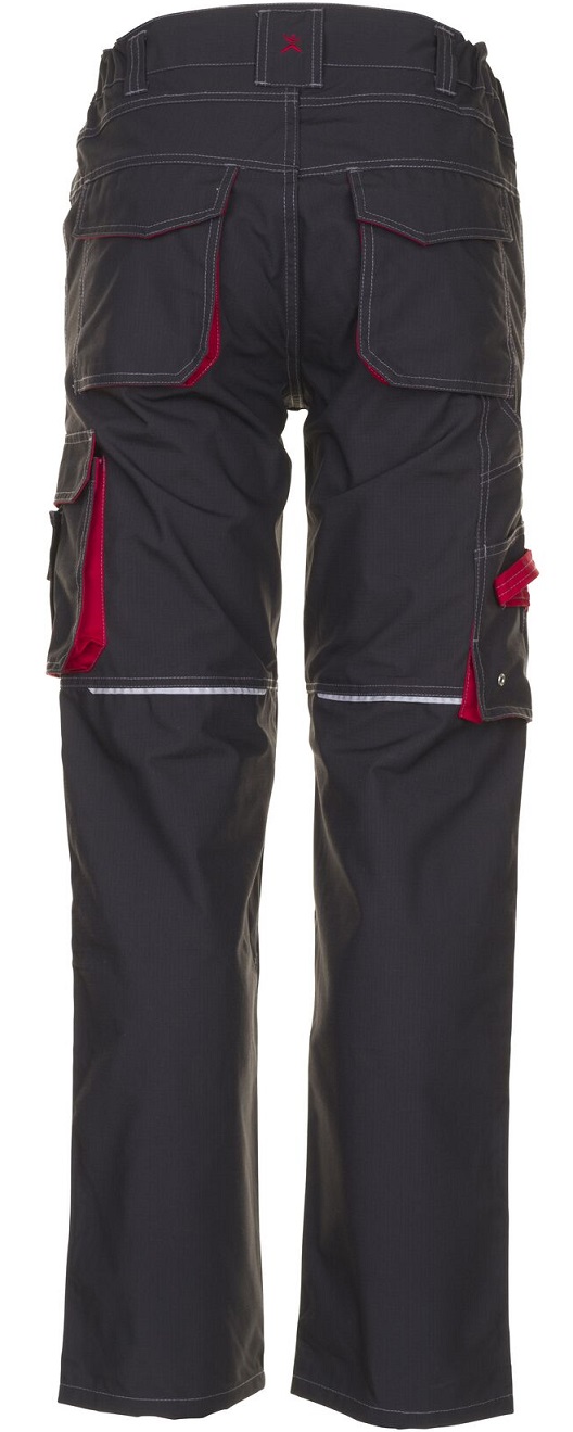 This article is certified as knee protection according to EN 14404 type 2, level 1 in combination with a knee PLANAMpad (art. no. 9901027). 2 patch side pockets with zip, 2 patch knee pockets can be operated from above, double ruler pocket on the right, thigh pocket on the left with flap and press stud, mobile phone pocket on the left, elasticated waistband, 2 hip pockets with flap and Velcro, zip in trouser fly, waistband with 7 belt loops and jeans button, reflective piping as safety equipment.