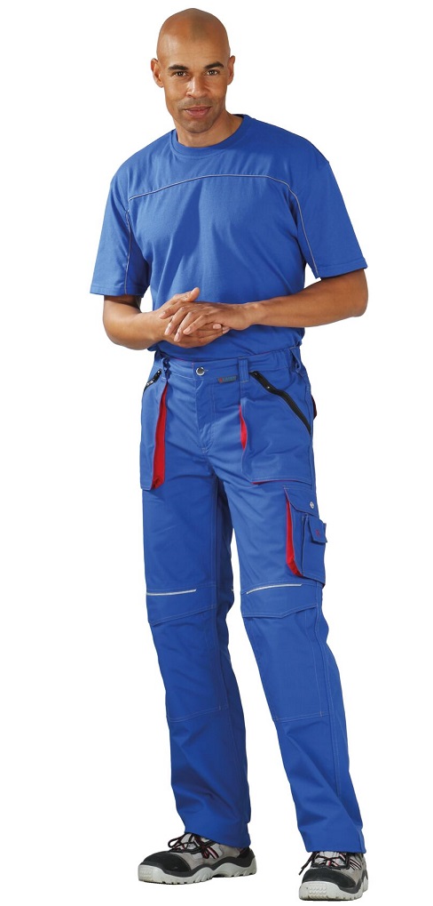 This article is certified as knee protection according to EN 14404 type 2, level 1 in combination with a knee PLANAMpad (art. no. 9901027). 2 patch side pockets with zip, 2 patch knee pockets can be operated from above, double ruler pocket on the right, thigh pocket on the left with flap and press stud, mobile phone pocket on the left, elasticated waistband, 2 hip pockets with flap and Velcro, zip in trouser fly, waistband with 7 belt loops and jeans button, reflective piping as safety equipment.