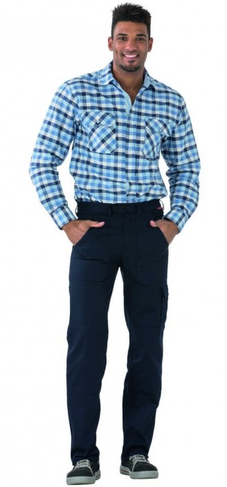 This article, in combination with a knee PLANAMpad (art. no. 9901027), is certified as knee protection according to EN 14404 type 2, level 1. Round waistband with 7 loops, elasticated waistband, left thigh pocket with integrated mobile phone pocket, knee pad pockets, fly with zip, 2 reinforced front pockets, 1 back pocket, 1 ruler pocket.