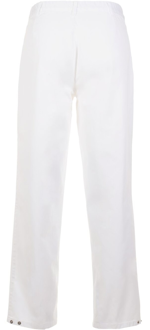 2 set-in pouch pockets, can be closed with flaps and press studs, elastic waistband, round waistband with 7 belt loops, zip in trouser fly, foot width adjustable with press stud.