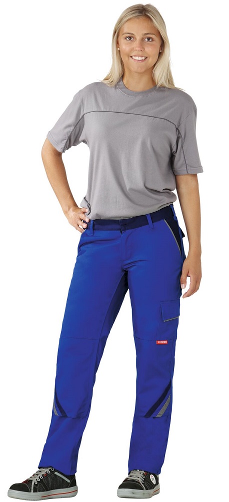 This article is certified as knee protection according to EN 14404 Type 2, Level 1 in combination with a knee PLANAMpad (Art.-No. 9901027). 2 set-in pouch pockets, 2 patch knee pockets with coloured applications, double ruler pocket, left thigh pocket with flap and Velcro fastener, elastic waistband, 2 hip pockets with flaps, zipper in trouser fly, pocket openings and pocket flaps with coloured piping.