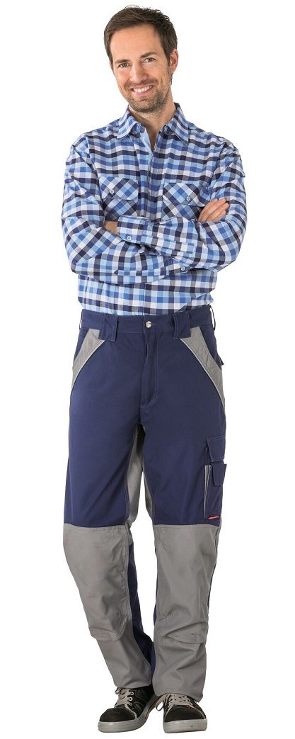 This article, in conjunction with a knee PLANAMpad (Art. No. 9901027), is certified as knee protection according to EN 14404 Type 2, Level 1. 2 set-in pouch pockets, 2 patch knee pockets, double ruler pocket on the right, thigh pocket on the left with flap and Velcro fastener, mobile phone pocket on the left, elastic waistband, 2 hip pockets with flaps and Velcro fastener, zip in trouser fly, reflective piping as safety equipment.