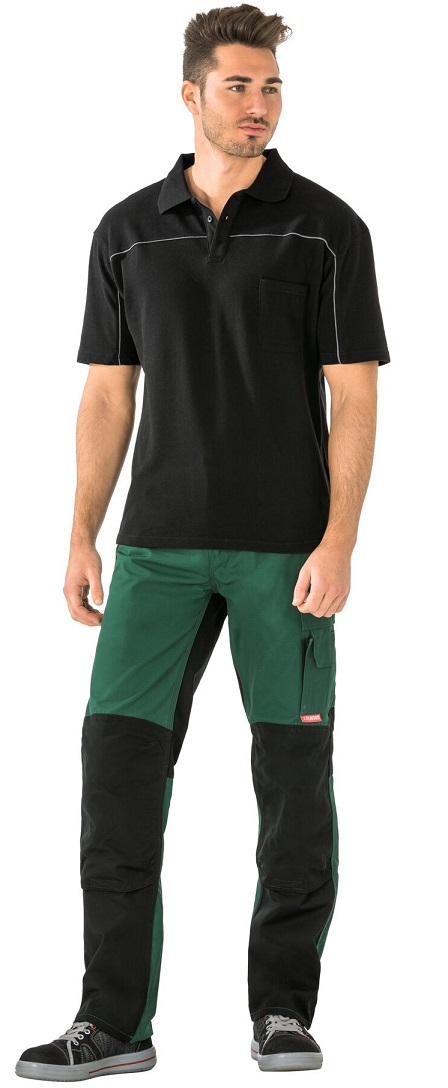 This article, in conjunction with a knee PLANAMpad (Art. No. 9901027), is certified as knee protection according to EN 14404 Type 2, Level 1. 2 set-in pouch pockets, 2 patch knee pockets, double ruler pocket on the right, thigh pocket on the left with flap and Velcro fastener, mobile phone pocket on the left, elastic waistband, 2 hip pockets with flaps and Velcro fastener, zip in trouser fly, reflective piping as safety equipment.
