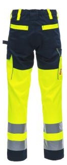 - Reinforcements on back belt loop, knee, seat and leg pockets, reflective stripes all around and reflective piping on side and knee pockets for extra visibility