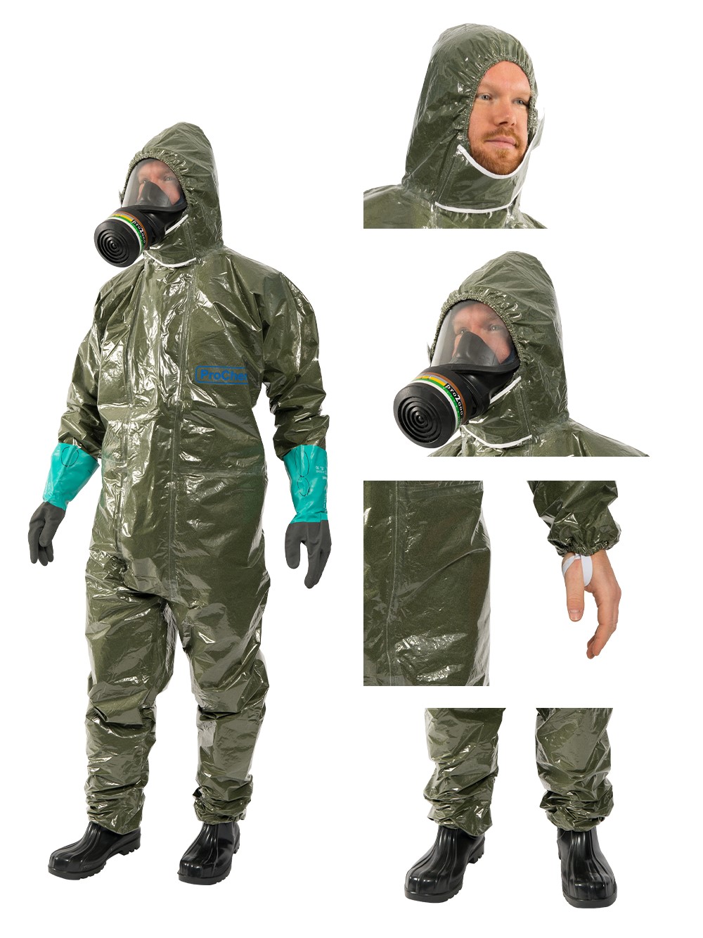The ProChem® I is primarily used in industrial and tank cleaning, for inspection work and by fire and rescue services. Elasticated sleeves, legs and hood as well as an elasticated waist ensure an optimum fit and the generously cut crotch area provides optimum freedom of movement. The ergonomic hood and the raised double cover flap with Velcro fastening over the zipper up to the chin offer additional protection. Elastic thumb loops prevent the sleeves from riding up when working overhead. The suit is made from our CLF material, which consists of a multi-layer durable barrier film and a moisture-absorbing inner fleece, providing the wearer with maximum comfort and optimum protection. It protects against a range of hazardous chemicals, including acids, alkalis and organic chemicals. It is extremely quiet and ideally suited for use in hazardous areas thanks to its excellent antistatic properties. It meets the requirements for the highest class biobarrier defined in the standard and theref