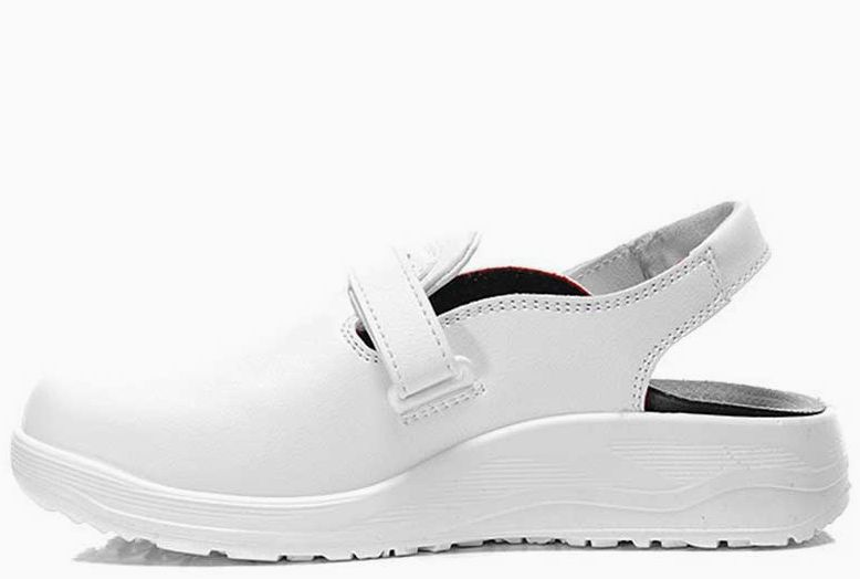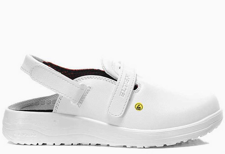 Light and comfortable foot protection in brilliant white - for all who expect more from a clog: The MIA white ESD SB is a safety clog from the ELTEN-CLOGS series: A steel toe cap protects you from falling objects and impacts at the workplace without restricting the foot. With the help of a heel strap and a Velcro fastener in the area of the instep, you can adjust this clog individually to your foot according to your needs. The polyurethane sole offers additional safety and prevents slipping on damp floors: a feature that is particularly appreciated by employees in the care, health and catering professions, where cleanliness is important and the surfaces can be slippery due to frequent wiping. Thanks to its ESD equipment, the safety clog prevents sudden, uncontrolled discharges, so that it can also be worn when handling sensitive equipment or components. The upper material made of light but resistant microfiber and the breathable Sanitized® textile lining ensure a fresh, pleasant feel