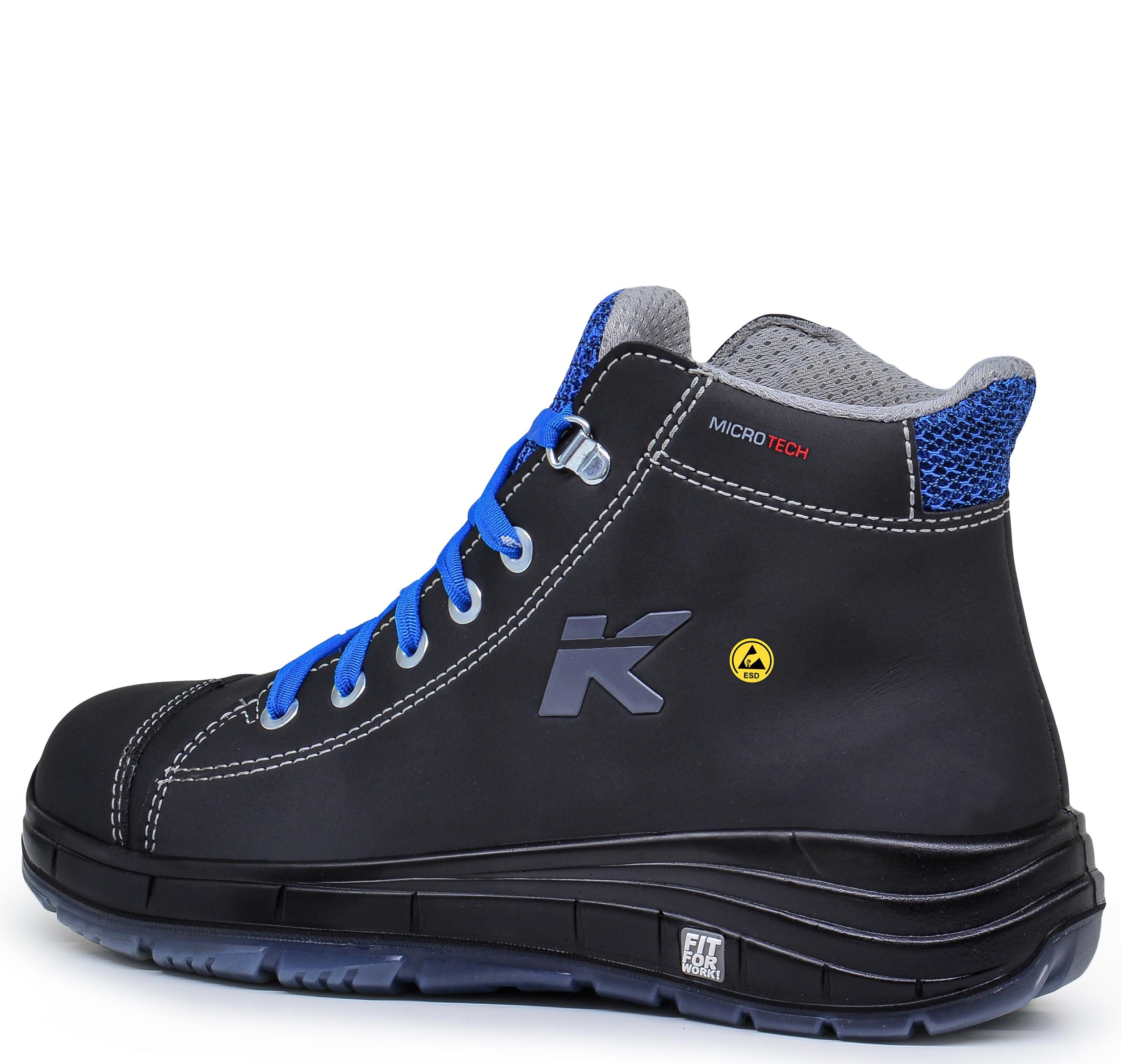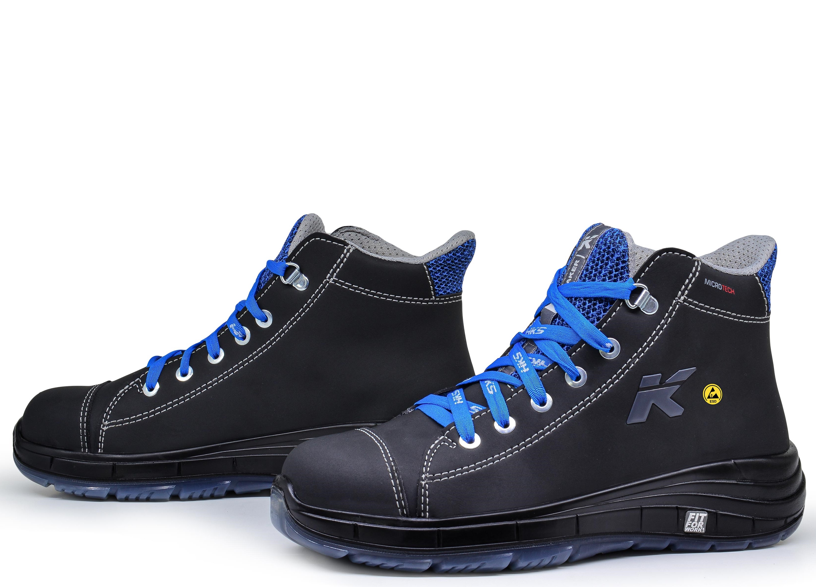New: Revised upper design Microtech upper Steel toe cap Nail penetration protecting T-Laminate insert Cold insulating K-RUN TPU/PU outsole, power grip on any surface, even when wet! N-standards: EN20345 S1 SRC Shoe shape: Ladies safety half boot Closure system: lace fastening Size range: 36-42 Upper material: supple microfibre upper material breathable, skin-friendly, abrasion-resistant, hygienic, New: innovative donning aid, for quick donning and doffing Fit: width 11 (normal) Weight: 430g (for size 38) Inner lining: Textile | Distance-Net, grey/blue Footbed: FIT FOR WORK footbed fitted as standard DGUV 112-191 The standard comfort footbed is exchangeable and optionally DGUV 112-191 adjustable. Midsole: PU (AIR-CELL damping system for optimum reduction of impact and pressure forces) Sole: TPU (grippy material components for good ground contact even on damp floors) tongue: textile Toe cap: Steel Foot protection: Antistatic (A), toe protection cap, slip-resistant (SRC = SRA + SRB), bre