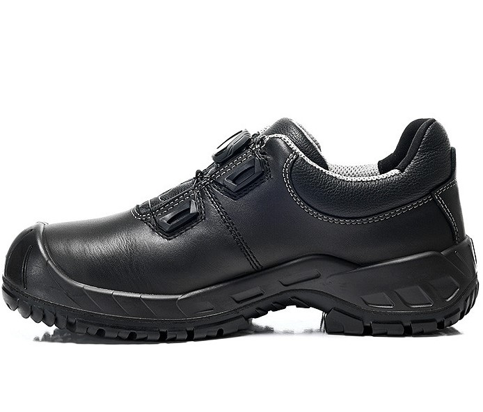 For tough applications on the construction site or in other demanding work areas, the LAURENZO BOA® Low ESD S3 is the safety professional for your feet. Equipped with the innovative BOA® Fit System, poor fit is a thing of the past. The upper material made of cowhide is very robust and water-repellent. The raised PU toe protection is very durable and prevents premature wear. The breathable textile lining ensures a comfortable wearing comfort. Equipped with a steel cap and a metal-free anti-penetration barrier, the LAURENZO is able to withstand the many dangers of tough use. The SAFETY GRIP outsole with its coarse studs supports the stability on uneven and slippery surfaces. This ESD-certified safety shoe is available in sizes 38 to 50. Standard: EN ISO 20345 S3 SRC, form A Cow leather upper Inner lining made of breathable textile lining Closed, padded flap Full-length insole ESD PRO black Metal-free penetration protection Rough PU/PU sole SAFETY-GRIP Steel cap Colour: black