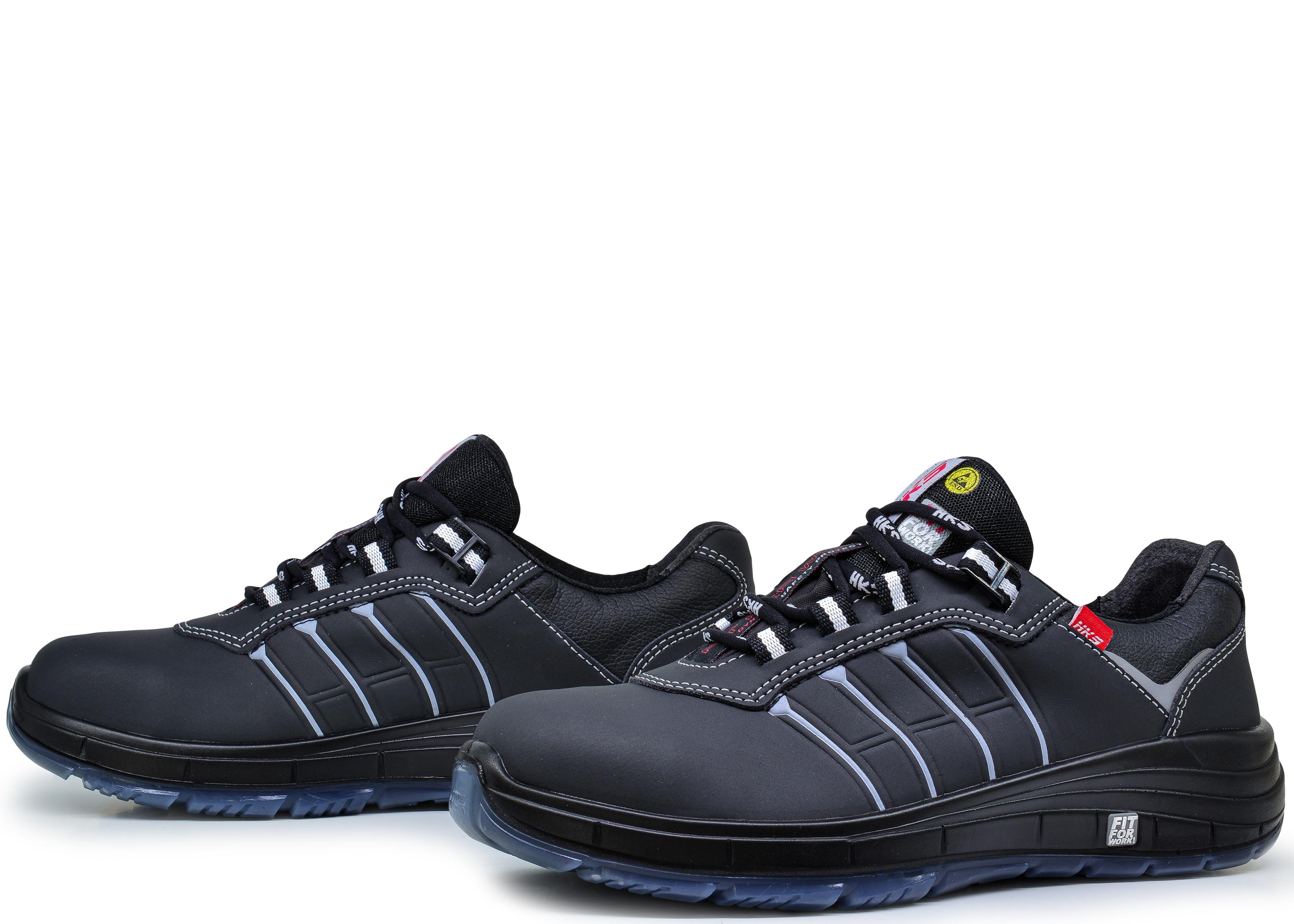 Sporty HKS® safety low shoe, made of impregnated oily aniline leather.