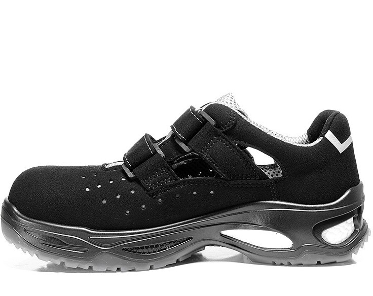 Air-permeable and yet robust: the ETHAN Easy ESD S1 not only impresses with its lightweight construction, but also with its innovative Wellmaxx sole, which allows the wearer to walk through the working day in a relaxed manner thanks to its excellent cushioning properties. The microfibre upper material is perfectly suited for tanning allergy sufferers and also makes it very breathable and easy to care for. Thanks to the plastic cap, this safety sandal is completely metal-free, which saves you having to take it off at the airport, for example, and allows you to work in metal-sensitive areas. The safety sandal can be opened and closed quickly and easily with the Velcro fasteners. The padded flap increases the wearing comfort even more. ESD capability, a slip-resistant outsole and the attached reflective material offer additional safety. For employees who require orthopaedic adjustments, the safety sandal is approved for orthopaedic adjustments according to DGUV 112-192. The ETHAN Easy is