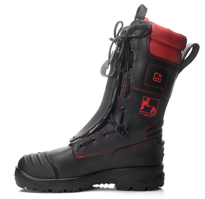 When you go through fire, you need a boot that doesn't flare up for long. The CURTIS GTX ESD HI3 CI WR type F2A has everything you need for tough operations. A class firefighting boot as it is written in the book! Seams made of heat-resistant Nomex® yarn, a combination of lacing and zipper, soft ankle padding, pull-on loop, inside pocket for attaching an RFID transponder - everything is in place here and ensures your safety. A steel toe cap, steel penetration protection and GORE-TEX CROSSTECH® membrane are also included. The latter not only makes the boot waterproof, it also reliably repels pathogens and viruses that can occur in body fluids, for example.The POWERGRIP coarse-tread RUBBER/PU sole with the steep front heel offers perfect grip during use, so that you will find the best stability even on slippery asphalt. This exceptional boot complies with the following standards: CI, HI3, HRO and F2A (TYPE 2).Defy the flames - with the CURTIS GTX ESD HI3 CI WR type F2A.